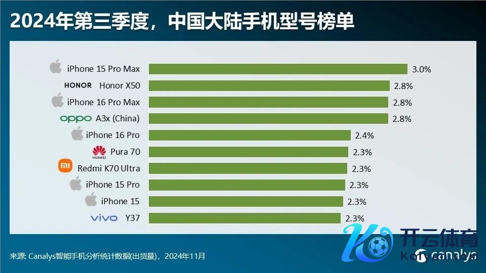 名次四至十位的分裂是:OPPO A3x(2.8%)、iPhone 16 Pro(2.4%)、Pura 70(2.3%)、REDMI K70至尊版(2.3%)、iPhone 15 Pro(2.3%)、iPhone 15(2.3%)、vivo Y37(2.3%)。看到了吗?第三季度国内单品销量前十iPhone机型就占五款,何况第一被苹果紧紧占据。更牛的是iPhone 16 Pro系列仅在第三季度卖了不到十天的时刻,销量就如斯之高,其它家具然则整整卖了三个月啊!