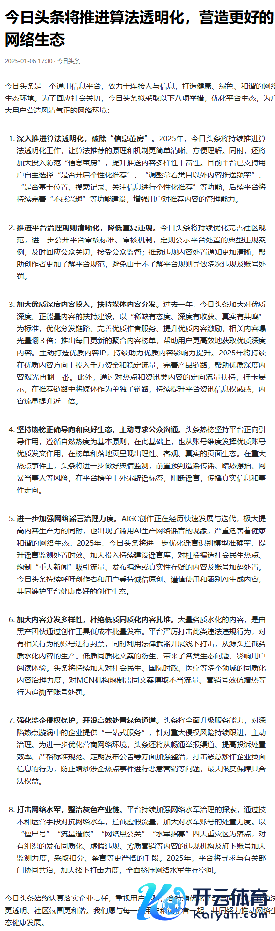 当天头条拟收受八项举措优化平台生态:股东算法透明化,营造更好的集聚生态当天头条拟收受八项举措优化平台生态:股东算法透明化,营造更好的集聚生态