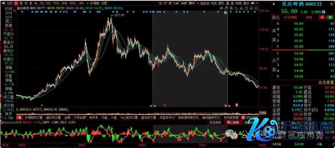 笔者还发现,该基金在2022年2季度抓有9.86万股的重庆啤酒,2022年3季度抓有22.13万股,2022年4季度抓有13.52万股。2023年1季度抓有13.52万股,到了2023年2季度也曾莫得了此前购买的股票。然则,在该基金抓未必间,在2022年4月1日-2023年6月30日股票价钱下落了10%。