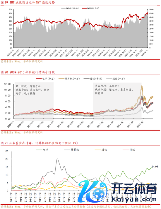 3)2009-2015年的A股“互联网科技”大行情分为两个阶段,第二阶段的行情时间更长、范围更广。第一阶段:2009年-2010年,投资干线为国际映射下的智高手机产业链。苹果iPhone的发布带动内行智高手机出货量合手续莳植,A股智高手机硬件端、苹果产业链受益领涨,代表个股有:莱宝高科(12倍)、得润电子(7倍)、歌尔股份(6倍)等;第二阶段2013年-2015年6月,投资干线为“互联网+”。这一阶段中国智高手机出货量快速增长,奉陪国产手机浸透率的合手续莳植,互联网下流愚弄飞快爆发,并扩散至金融、耗尽劳动、医疗、老师、文娱等各界限,重复企业并购重组彭胀和杠杆资金入市进一步拔高估值,推动此轮科技牛市走向了泡沫化,代表个股有:银之杰(58倍)、东方钞票(44倍)、同花顺(33倍)。