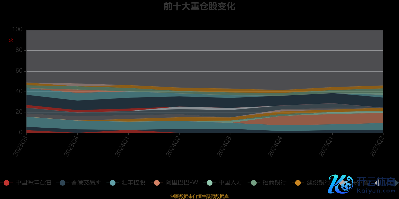 适度2025年上半年末,基金十大重仓股区别是腾讯控股、阿里巴巴-W、汇丰控股、小米集团-W、配置银行、香港来去所、中国吉利、盟国保障、中国东说念主寿、中国太保。